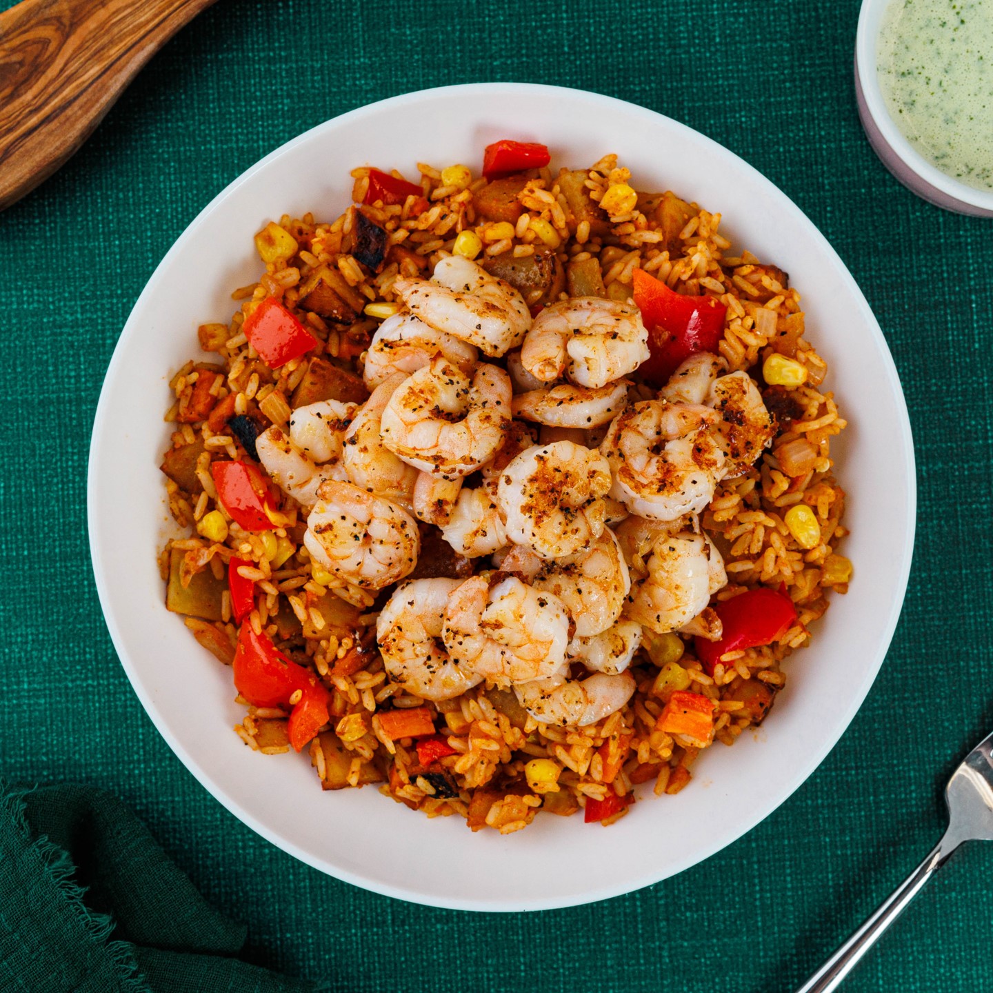 This weeknight favorite is packed with flavor and a snap to prepare. With our fresh Mojo Verde sauce, veggie-filled Spanish rice, and seared shrimp, it’s a sunny dinner perfect for a cold night.