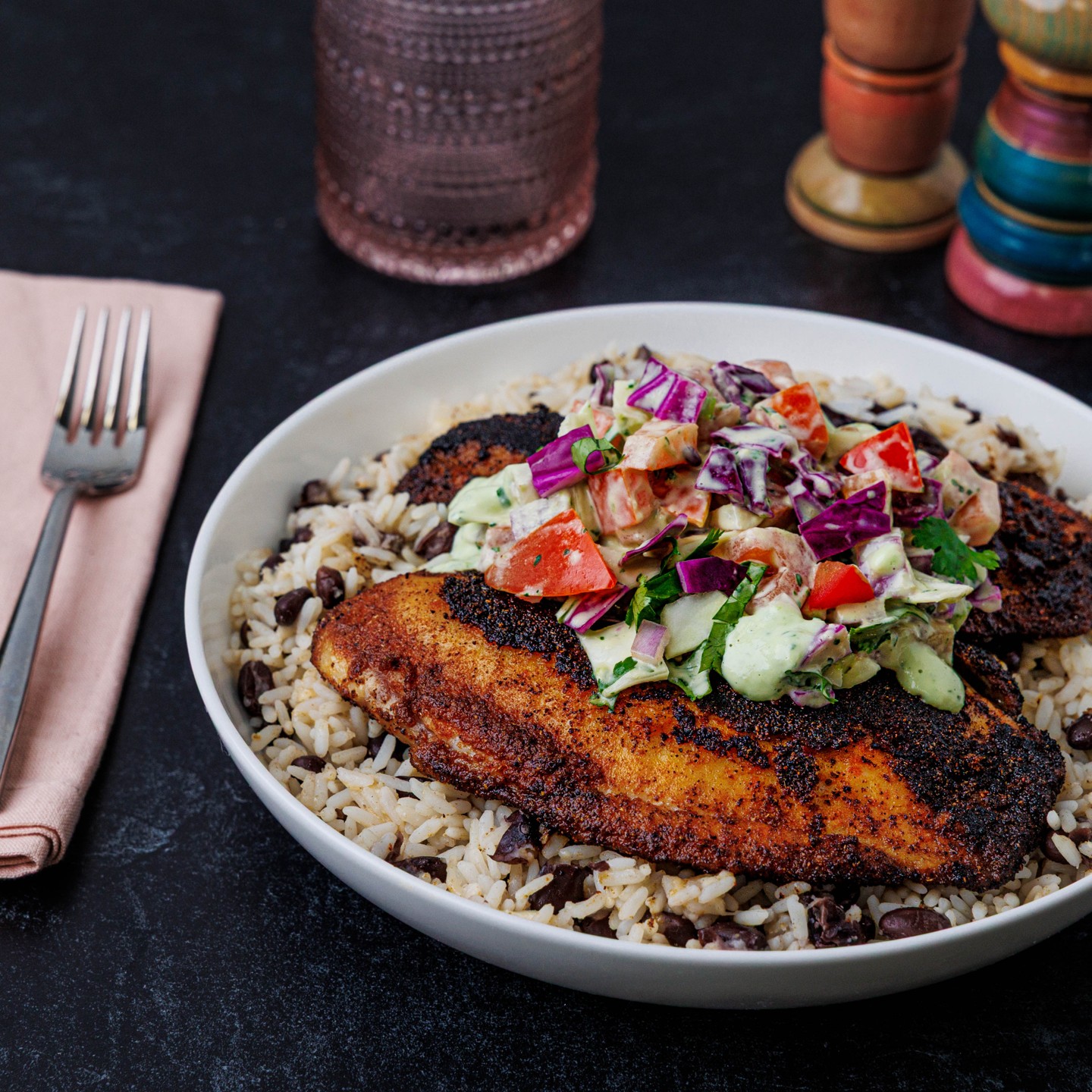 This fresh Mexican-inspired rice bowl brings bold seasoning and cool, creamy balance together in every bite. Blackened tilapia is served over warm rice and beans with melted cheese, then finished with a crisp slaw tossed in creamy avocado dressing. It’s cozy, satisfying, and ready in just 20 minutes.