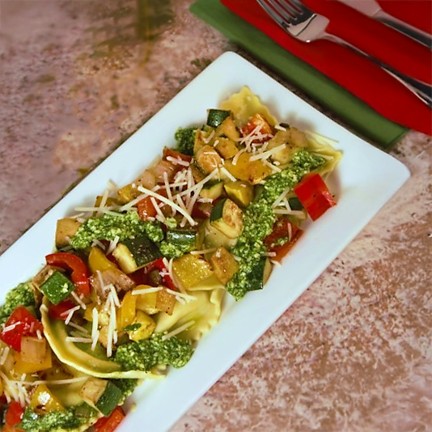 Ravioli with Arugula Pesto (Vegetarian) or ADD Chicken, Shrimp or Steak