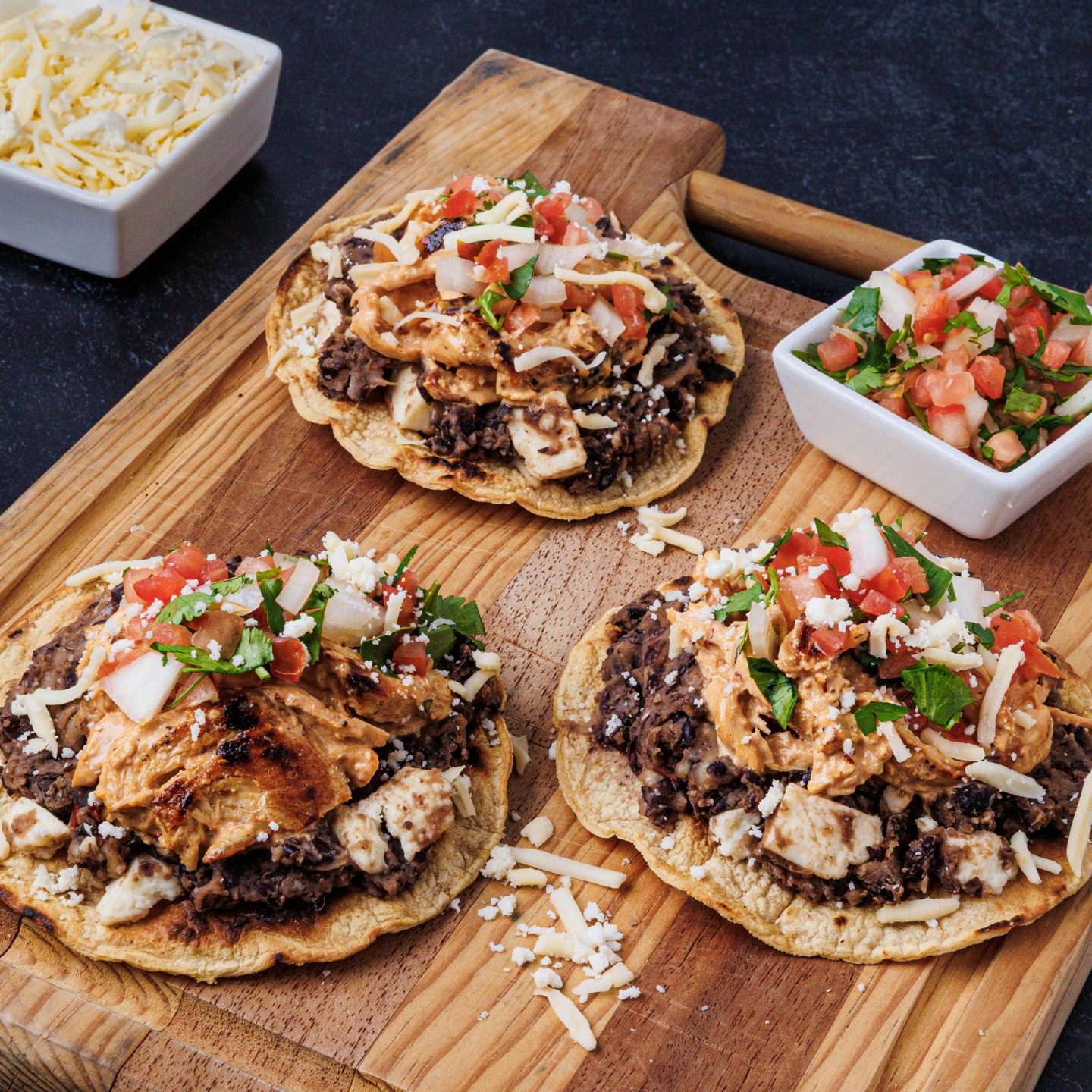 Chipotle Chicken Tostada with Cheesy Refried Beans