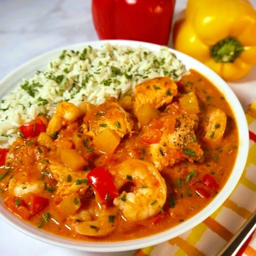 Brazil’s classic fish stew is surprisingly easy to make at home and hands down delicious. We make our version with the traditional coconut milk and tomatoes, plus seared salmon and shrimp. We serve it with cilantro rice for a cozy dinner that’s on the table in less than thirty minutes.