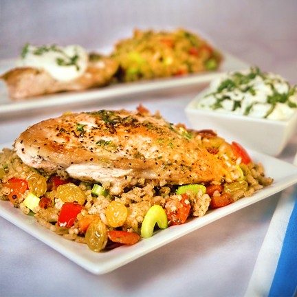 Substitute cauliflower "rice" for the rice pilaf.