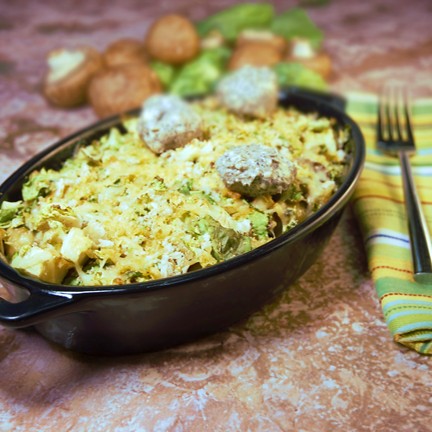 We’ve made a few recipes inspired by the classic American spinach and artichoke dip, and this is one of our favorites. We’re combining its creamy deliciousness with pasta shells, arugula and peppers, and sautéed chicken. Baked up with a Ritz cracker topping, it’s comfort food just right for a chilly night.
