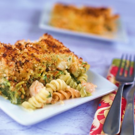 Definitely not your mother’s Mac & Cheese. We’ve cooked up a recipe that’s healthier and more delicious than the American classic. It all starts with a creamy gruyere and white cheddar cheese sauce that’s a perfect compliment to sautéed shrimp, kale and tri-colored rotini. Topped with crunchy breadcrumbs, it’s a speedy dinner that tastes out of this world.