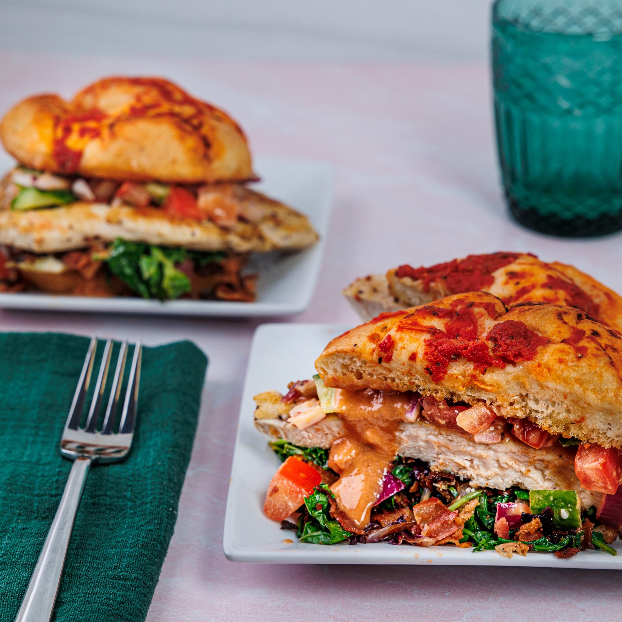 This breezy sandwich pairs our famous Zesty Catalina dressing with all-natural chicken breast, sauted kale, crispy bacon, arugula, crunch veggies, and a toasted tomato focaccia roll. It’s a dinner that’s fast, fun and filling.