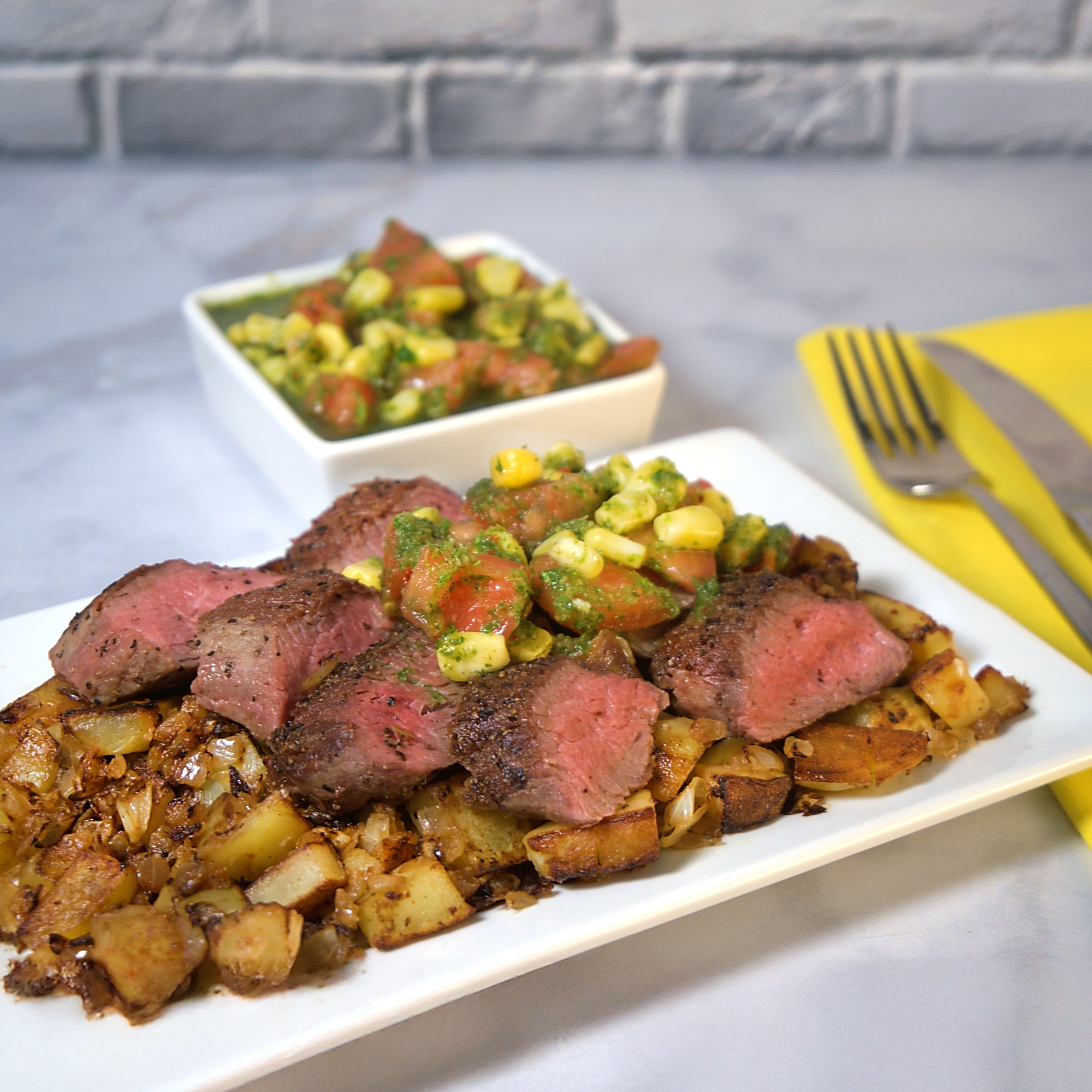 An irresistible update on an Argentinean classic. With a zesty chimichurri sauce, mouthwatering strips of steak and skillet roasted potatoes, it's a sinfully delicious meal without all the calories. Seconds, anyone?