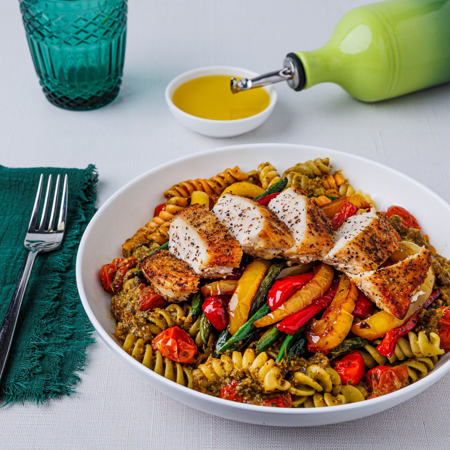 This dinner is all about bright flavor and garden-inspired comfort. All-natural chicken breast, green beans, bell peppers, and tricolor rotini are tossed with vibrant vegetables in a primavera sauce made from fresh vegetables, herbs, garlic, and lemon that lightly coats every bite. It’s fresh, satisfying, and full of classic Italian character.