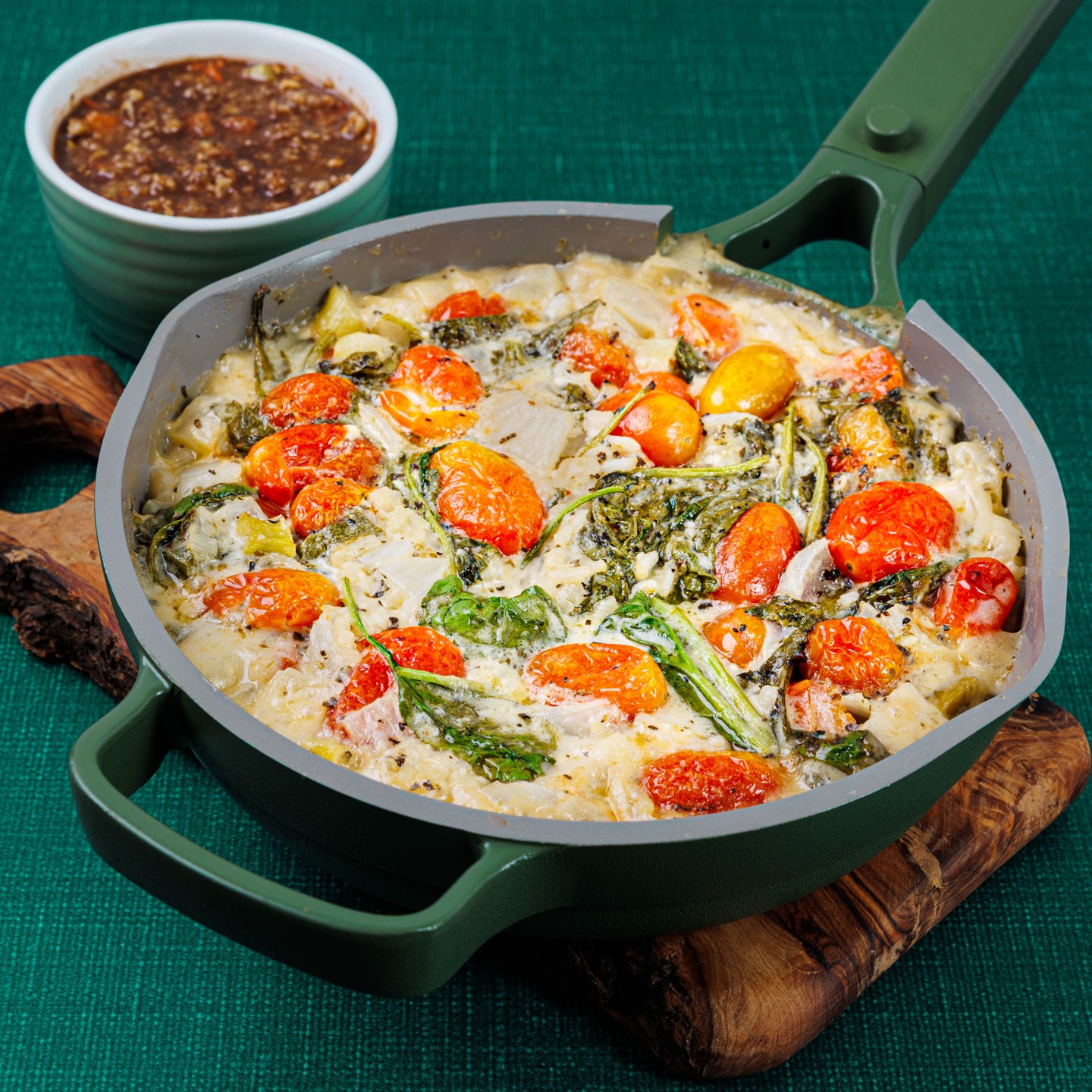Creamy risotto, tangy feta, and sweet roasted tomatoes make this dinner a standout. We’re combining white wine, caramelized onions, and a touch of cream, then finishing with fresh spinach and a drizzle of balsamic pesto. It’s delicate, hearty, and absolutely delicious. -- To add chicken, steak, salmon, or shrimp, see "ADD PROTEIN” section below entrees. --