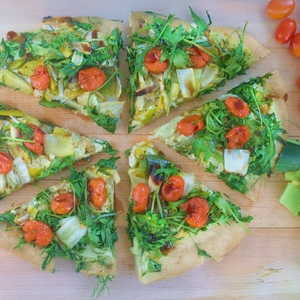The Ricotta and Pecorino Cream sauce is a family favorite. If you’re cooking with a picky eaty, make single-serve pizzas and let everyone add the veggies and greens to their own tastes.